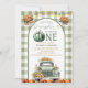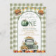 Fall Autumn Pumpkin Green Truck Gingham String Lights Floral Convite, Editável Autumn Boy Our Pumpkin Primeiro Convite de Aniversário, ZB1