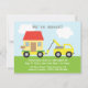 Convide seus amigos para uma festa de aquecimento da casa em seu novo endereço com este caminhão amarelo giro e giro rebocando uma casa com seu gramado intacto. Personalize facilmente com seus detalhes.
