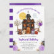 Cóstia Cóstia Cóstia Trick ou Treat Halloween design com animais de casinha, urso, raposa, cão e guaxinim assombrados em fantasias, um fantasma e flores roxas e pretas