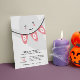 Os convites para as festas do Dia das Bruxas das Crianças Adoráveis são perfeitos para as crianças, a cesta do Dia das Bruxas, o truque da vizinhança ou os eventos de tratamento, as festas de fantasias e as celebrações do Dia das Bruxas! O design gráfico apresenta uma ilustração fantasma de aquarela sorridente segurando bandeiras de bunting com a palavra "BOO". Personalize com os detalhes do seu partido abaixo em letras negras e INK. NOTA: TODAS AS CORES SÃO EDITÁVEIS