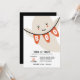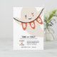Os convites para as festas do Dia das Bruxas das Crianças Adoráveis são perfeitos para as crianças, a cesta do Dia das Bruxas, o truque da vizinhança ou os eventos de tratamento, as festas de fantasias e as celebrações do Dia das Bruxas! O design gráfico apresenta uma ilustração fantasma de aquarela sorridente segurando bandeiras de bunting com a palavra "BOO". Personalize com os detalhes do seu partido em letras negras e laranja.
