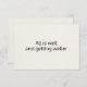 Este cartão de afirmação contém uma simples citação positiva - "Tudo está bem e está ficando mais solto". Você pode editar este texto e adicionar qualquer frase que desejar. Edite um cartão, adicione ao carrinho e edite novamente para fazer um baralho de cartas inspiradoras. Em segundo plano está uma sutil foto de textura de papel - que você pode substituir por uma foto de sua escolha. Esta é uma ferramenta excelente para melhorar seu foco espiritual - meditar sobre a frase, ou colocá-la em volta de sua casa e ser lembrada diariamente do propósito de sua alma. ・ ・ ・ Para mais artigos de papelaria espiritual, visite a minha loja Zazzle.com/In_The_Vortex