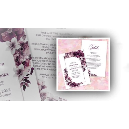Convide seus amigos e entes queridos para o seu casamento para testemunhar e celebrar o início de sua jornada ao longo da vida com este convite floral cor-de-rosa e ameixa. O texto personalizável permite adicionar sem esforço seus nomes, data de casamento e os detalhes necessários de sua celebração. Projetado para o casal econômico, a localização do local de recepção, a solicitação de resposta RSVP, os detalhes de acomodação e qualquer outra informação que seus convidados possam exigir podem ser incluídos no verso deste convite, economizando dinheiro em papelaria extra. Vários tipos de papel e estilos de canto estão disponíveis para seus convites exclusivos, juntamente com a opção de download.