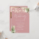 Este elegante e empoeirado rosa floral verde corda luminoso pode ser personalizado com suas informações em tipografia gráfica com todas as suas informações especiais sobre fotos e dia de casamento no verso, incluindo seu RSVP, acomodação e detalhes adicionais. Projetado por Thisnotme©