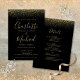 Convite Tudo Em Um Casamento Preto e Dourado com Brilho Ro