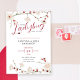 Este convite para o chá de fraldas "Little Ladybug All-in-one" apresenta um design de flores de cereja vintage e joias. O texto está em um vermelho suculento e carvões para se coordenar com os joelhos e as cerejas floridas. O verso apresenta os detalhes do chá de fraldas, juntamente com o código QR para o registro da futura mãe. Simplesmente personalize o roteiro para suas necessidades com este doce design.