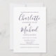 Apresentando nomes de estilo de assinatura, este elegante convite de casamento roxo e branco pode ser personalizado com todas as suas informações especiais sobre o dia do casamento, incluindo seu RSVP, acomodações e detalhes adicionais. Projetado por Thisnotme©