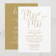 Este convite de casamento com escrita dourada elegante pode ser personalizado com todas as informações especiais do seu casamento no verso, incluindo sua confirmação de presença, acomodação e detalhes adicionais. Concebido por Thisisnotme