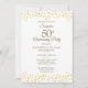 Personalize este convite de festa surpresa de aniversário de 50 anos de casamento com estilo e elegância, com seus detalhes em letras douradas e informações adicionais para convidados no verso. Criado por Thisisnotme©