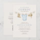 Convite de chá de bebê tudo em um com um design de linha de roupas de caubói com charme ocidental. Projetado para incluir todos os detalhes do chá em um layout coordenado único para fácil compartilhamento. Ideal para chás de bebê com tema de caubói, celebrações rústicas e boas-vindas a um bebê menino. Texto editável. Layout limpo e pronto para impressão.