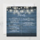 Um convite de casamento rústico com belas luzes de corda e uma delicada guirlanda floral rústica desenhada à mão com folhagem botânica e tipografia estilosa, sobre um fundo de madeira rústica azul. Personalize com todas as informações especiais do seu dia de casamento no verso, incluindo seu RSVP, acomodação e detalhes adicionais. Criado por Thisisnotme