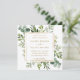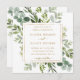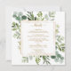 Este convite quadrado de casamento mostra cor d'água eucalipto verde, folhas verdes com uma falso estrutura quadrada de ouro. Salve o papel incluindo os detalhes e o RSVP na parte de trás do convite para o casamento. Para personalização mais avançada deste design, clique no link "personalizar mais". Itens correspondentes também estão disponíveis.