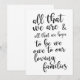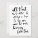 Um elegante sinal de casamento de ponta, apresenta o texto "Tudo o que somos & tudo o que esperamos ser devemos às nossas famílias amorosas" em uma fonte de letra extrovertida, a textura da pincelada adiciona um sentimento espontâneo e divertido. A cor do fundo pode ser personalizada de acordo com as suas necessidades e preferências, por favor entre em contato comigo se tiver algum pedido especial.