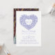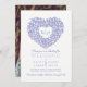 Flores de primavera botânica desenhadas à mão, cor azul púrpura, flores de cor azul, em forma de coroa, convites para casamento de arte em linha. Tulipas design circulando em forma cardíaca, suas iniciais de monograma design e sua própria foto do outro lado. Outras cores e itens correspondentes disponíveis. © Desenho de tinta original e design de cobertura de cor gráfica por Sarah Trett para www.mylittleedenweddings.com em zazzle.