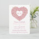 Flores de primavera botulipas em forma de coração, em forma de buquê, coroa de coroa pintada em convites para casamento tinto com vinho escuro. Tulipas cor-de-rosa macio e folhas verdes frescas design circulando em torno de um design de monograma em forma cardíaca. Outras cores e itens correspondentes disponíveis. © Original floral Heart ink desenho e cobertura gráfica colorida design por Sarah Trett para www.mylittleedenweddings.com em zazzle.
