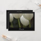 Convide os convidados a continuar a celebração na manhã após a cerimônia de casamento com o adorável Convite de Brunch Pós Casamento Tulipas de Jardim Brancas. Este elegante convite personalizado para Café da Manhã ou Almoço Após o Casamento apresenta uma fotografia floral aproximada de flores de tulipa branca desabrochando no caule com minúsculas gotas de água. Perfeito para um tema de evento de primavera elegante em março, abril ou maio.