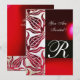 CONVITE TULIPAS DE VELUDO VERMELHO COM MONOGRAMA EM DAMASC