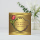 Convite de aniversário de casamento de 50 anos com tulipas vermelhas elegantes e douradas.
