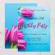 Convite Tulipas rosa em um azul