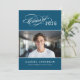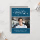 Celebre seu formando com este convite moderno de festa de formatura com a elegante tipografia “Turma de 2026” em uma rica paleta de cores azul-teal. Personalize o nome do formando, escola e detalhes da festa para um visual sofisticado que mantém a foto em destaque. O design da parte de trás usa um layout cinza limpo para facilitar a leitura dos detalhes do evento e informações de RSVP. Perfeito para festas de formatura e celebrações de estilo open house.