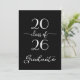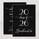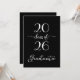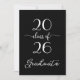 Envie convites de festa de formatura modernos e elegantes para a celebração do seu graduado apresentando um design de tipografia cursiva branca em negrito que diz: "Graduado da turma de [ANO]" em um fundo preto. Personalize o ano na frente e substitua o texto de exemplo no verso do convite para o seu graduado e evento. O verso preto apresenta a palavra "celebrate" em uma fonte cursiva branca. Personalize para qualquer tipo de graduado: ensino médio, faculdade, pós-graduação, direito, medicina ou curso técnico.