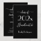 Envie convites de festa de formatura elegantes e modernos para a celebração do seu formando, apresentando um design de tipografia cursiva branca em negrito que diz: "Formado da turma de [ANO]" acima do nome do seu formando em um fundo preto. Personalize o ano e o nome na frente e substitua o texto de exemplo no verso do convite para o seu formando e evento. O verso apresenta a palavra "celebre" em uma fonte cursiva branca sobre preto. Personalize para qualquer tipo de formando: ensino médio, faculdade, pós-graduação, direito, medicina ou curso técnico.