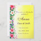 Celebre a turma de 2025 com um toque floral vibrante! Este design apresenta flores elegantes roxas, brancas e rosadas contra um fundo amarelo alegre, simbolizando crescimento e novos começos. Perfeito para convites de formatura, presentes e lembranças para homenagear esse marco especial.