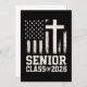 Layout ousado da turma de 2026 com elementos da bandeira dos EUA e cruz. Ótimo para estudantes orgulhosos de seus valores e prontos para se formar com força.
