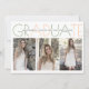 Formatura da turma de 2026 Graduação verde sage e listras de pêssego moderna, simples e minimalista, convite de festa com colagem de três fotos. Apresenta o texto "Graduate" em verde sage e pêssego e três fotos. O verso apresenta uma foto e um padrão de listras diagonais nas mesmas cores.