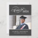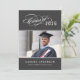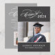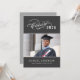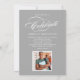 Celebre seu graduado com este convite de festa de formatura elegante, apresentando um script de caligrafia "Turma de" com floreios com o ano em um fundo preto carvão ao lado de um retrato de formatura enquadrado por finos acentos de linha. O verso cinza apresenta um belo título de "Celebre" com script, um segundo espaço para foto e todos os detalhes da sua festa. Texto totalmente personalizável em ambos os lados.