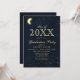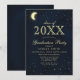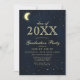 Convite de Turma de Graduação da Lua Estelar Celestial. Este design apresenta luzes de estrelas cintilantes com uma lua crescente brilhante no céu noturno estrelado.