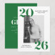 Convide familiares e amigos para celebrar o seu graduado com esses convites modernos de festa de formatura da turma de 2026, projetados com um estilo ousado e contemporâneo. A frente do convite apresenta a foto do graduado emoldurada em branco, com “2026” exibido em letras verdes impressionantes nos cantos superior esquerdo e inferior direito. Personalize a frente com o nome do graduado e a escola para criar um anúncio significativo e elegante. A parte de trás do convite exibe os detalhes da sua festa de formatura em letras brancas contra um fundo verde sólido. Perfeitos para formaturas do ensino médio e universitário, esses convites de festa de formatura com foto oferecem uma maneira limpa e moderna de celebrar a turma de 2026.