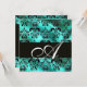 Convite TURQUASE GREEN SILK DAMASK CLOW MONOGRAMA, branco