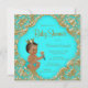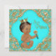 Convite de chá de bebê azul-turquesa e dourado com adorável príncipe étnico vestindo uma fralda azul-turquesa e linda coroa dourada sobre um belo fundo turquesa azul-turquesa e dourado. Você pode personalizar facilmente este convite de chá de bebê turquesa elegante para o seu evento, simplesmente adicionando seus detalhes no estilo de fonte de sua escolha. Você também pode excluir a camada turquesa e adicionar sua própria cor. Este é um design impresso sem brilho real, joias, etc.
