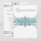 Convite de festa de Quinceanera azul turquesa azul e prata. Este elegante design de festa de aniversário de Quinceanera azul turquesa pode ser facilmente personalizado para a sua festa ou evento, simplesmente adicionando os detalhes do evento, estilo de letra, tamanho e cor da fonte e texto. Por favor, note que todos os desenhos de convite que você encontrará na Zazzle são gráficos impressos em papel liso sem joias, laços, relevos, rebaixados ou peças ou partes adicionadas.