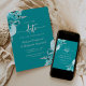 Convite Turquesa Casamento Floral de Prata Save the Date