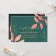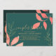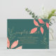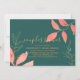 Convite de chuveiro de casal temático manuscrito de folhas de aquarela elegante e moderno em turquesa com folhas de coral e dourado com espaço no verso para detalhes adicionais. Para suprimentos de festa correspondentes, entre em contato com o designer. Você pode transferir este design para um convite magnético ou outro tamanho, estilo conforme desejado.