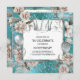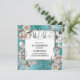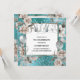Um belo quadro quadrado é revestido de delicadas rosas de aquarelas em tons de branco claro e cor-de-rosa poeirento que formam uma borda em torno de modelos pretos e falso cintilante; balões e cordões de joias colocados sobre um fundo azul e branco de turquesa brilhante. Os cantos têm delicadas espirais floreadas prateadas, e uma coroa prateada suja, com capas de diamante, aparece ao longo do topo. Folhas deliciosas trazem suavidade a este elegante e chique visual francês. Ideal para um chá de panela, festa de aniversário ou aniversário especial de casamento.