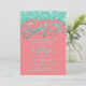 Este design de convite 16 original e exclusivo apresenta poeira brilhante verde turquesa verde-densa moderna, cinzenta e cinzenta impressa, com tipografia de brilho de pincelada personalizada sobre um simples fundo rosa-coral. Este convite fantástico e glamouroso vai abater seus convidados e ser o perfeito elogio pela festa de aniversário bonito e elegante de sua filha. Altere a cor do fundo ou do texto clicando no botão "personalizar" para obter mais opções. ***NOTA DE DESIGN IMPORTANTE: Para qualquer solicitação de design personalizada, como solicitações de correspondência de produtos, alterações de cor, mudanças de posicionamento ou qualquer outra solicitação de alteração, clique no botão "CONTACT" ou envie um e-mail ao designer diretamente em lafemme.art@gmail.com. Você pode até enviar um e-mail para ela solicitando um design completamente personalizado e novo.