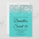 Crie o seu próprio convite vertical para a celebração de aniversário de 16 anos, 5 dias por semana, para a sua filha. Gráficos de arte digital cintilantes prateados decorativos sobre uma cor de fundo sólida de cor azul turquesa média. Os brilhos e a brilha do luxo serão criados por elementos artísticos que impressão gostam de uma foto. Você pode personalizar a cor da fonte da cinza clara, assim como os estilos de fonte elegantes.