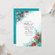 Convite Turquesa e Coral Rustic Foto Floral de Casamento