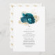 Convite Turquesa e Dourada Celebração Floral da Vida