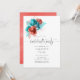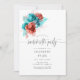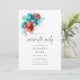 Rosas de turquesa e coral e convites para festas de solteira de folhagem com brilho tropical concebidos para serem rápida e facilmente personalizados de acordo com as suas especificações de evento.
