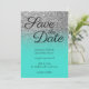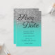 Convite Turquesa Ombre Silver Glitter Salvar a Data