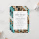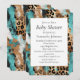 Convite Turquesa Ouro Leopardo Preto
