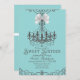 Convite Turquesa & Prata Laço Branco Doce 16 Dezesseis
