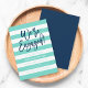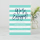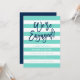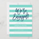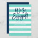 Convite de Festa de noivado na moda com as palavras "Estamos Envolvidos" em um script de pincel azul moderno contra um fundo de turquesa e listras brancas. A placa tem um lado azul correspondente. Veja outros itens correspondentes aqui https://www.zazzle.com/collections/119250194970828530?rf=238364477188679314 Personalize-o substituindo o texto do marcador de posição. Para obter mais opções, como alterar a fonte e seu tamanho/cor ou o espaçamento entre letras, clique no botão "Personalizar". *Observe que a Marca d'água do Zazzle que aparece na visualização de zoom NÃO aparecerá no produto impresso final. © Rosewood e Citrus