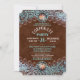 couros castanho-turquesa com ferramentas do país ocidental Convites de festas de Natal corporativos.convites de festas de porta-coroas russas com fundo de textura em couro.