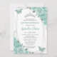 Convite Turquoise Green Floral Butterflies Quinceanera 15