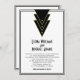 Um elegante design com simplicidade decorativa, este convite de casamento apresenta um trio de triângulos pretos bordados numa matiz dourada com garras simuladas em ouro redondo combinando. Uma linha fina dupla borda o convite para melhorar seu estilo de deco artístico. Os impressões de design achatam no anúncio de concurso de alta qualidade com belos resultados. Personalize este convite com seus detalhes de casamento. Você pode alterar o texto para se adequar ao seu estilo e preferências, bem como alterar fontes e mover o texto conforme as suas necessidades. Este convite funciona bem em qualquer estação do ano.